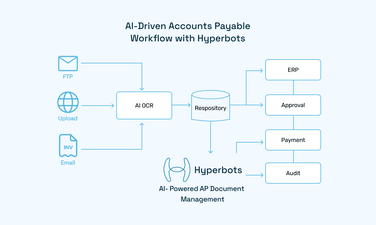 Traditional solutions stop at storage; Hyperbots fuses document control with transaction automation: