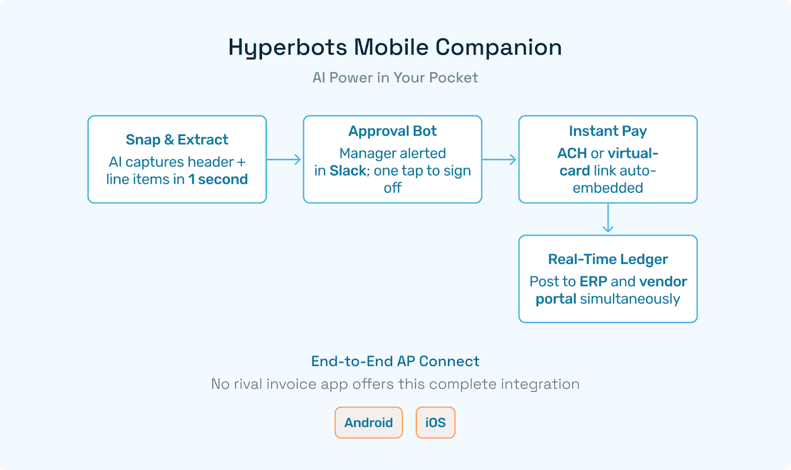 Hyperbots Mobile | Android + iOS | Yes (VLM) | Teams/Slack | NetSuite, SAP, QuickBooks | $12 /mo |
