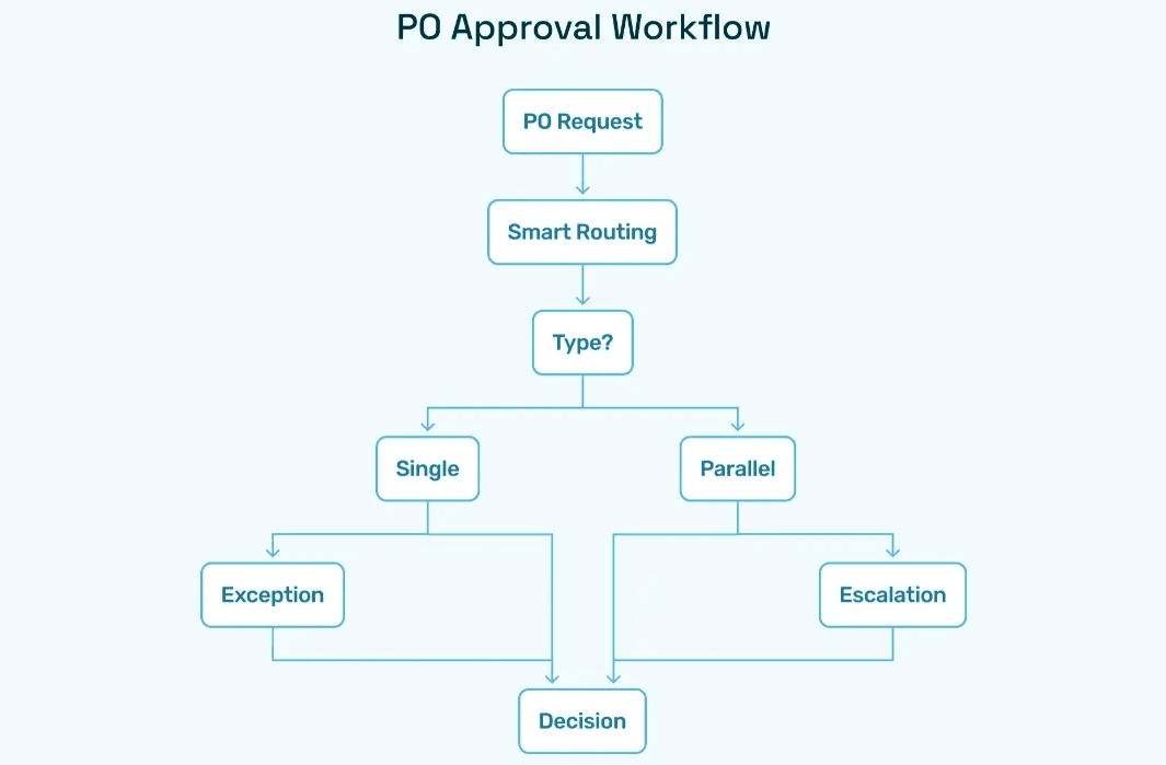 AI-Powered Decision Engine: Automates approval workflows based on company policies and vendor preferences.