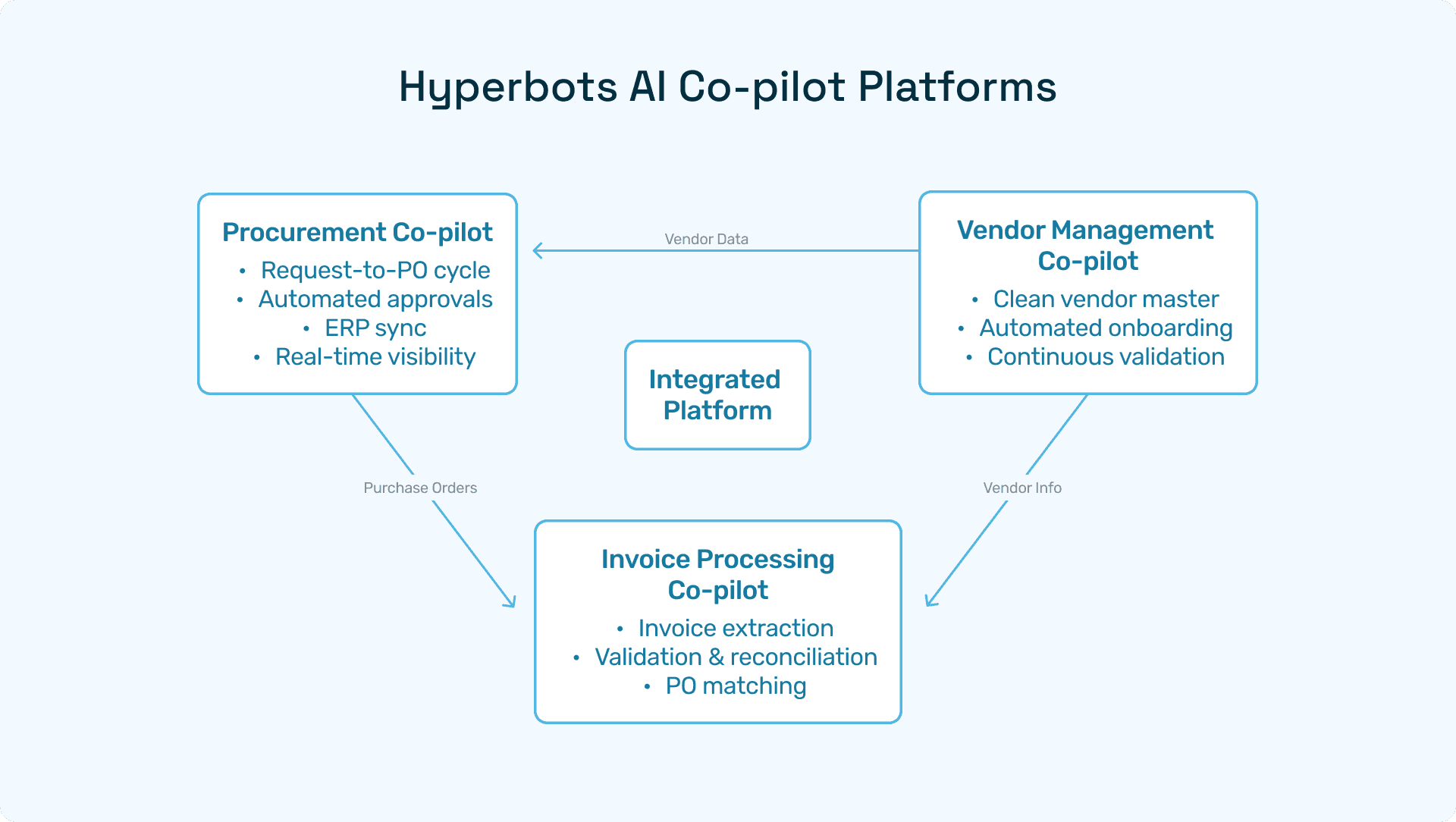 Hyperbots’ Procurement Copilot and supporting Co-Pilots deliver the fastest cycle times, strongest compliance, and highest ROI in the market - turning static Excel and email processes into dynamic, AI-powered workflows.