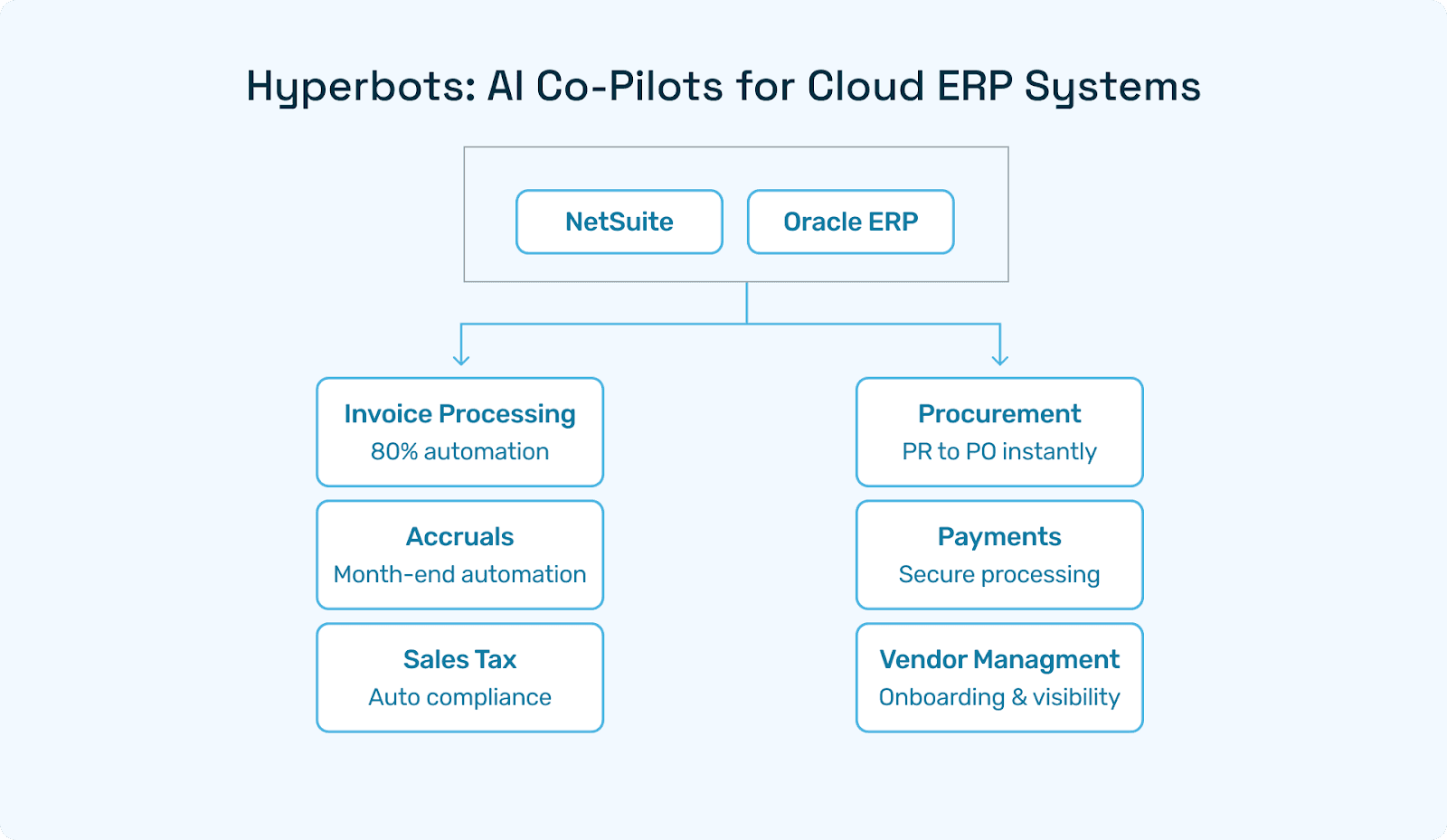 Whether you run NetSuite or Oracle ERP, Hyperbots delivers AI-native productivity that modern CFOs demand.