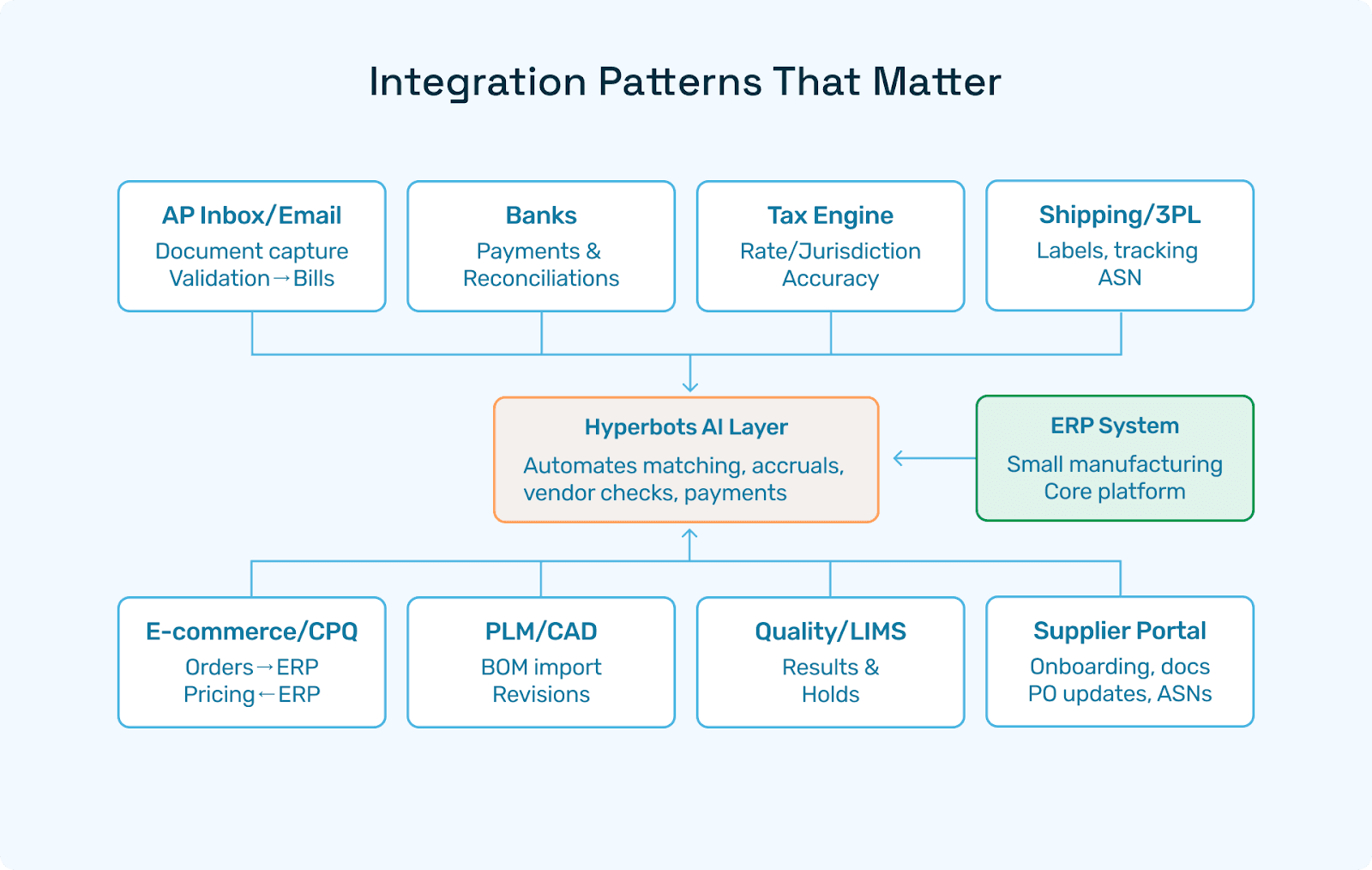 Finally, we’ll show how Hyperbots overlays any ERP (cloud or on-prem) to multiply your ROI. With six finance-grade AI Co-pilots, Invoice Processing, Procurement, Accruals, Payment, Sales Tax Verification, Vendor Management, Hyperbots turns your ERP into a faster, cleaner, more accurate financial engine, driving 80%+ straight-through processing (STP) and measurable cash savings. If you’re choosing an ERP software for a small manufacturing business or looking to upgrade, this guide will help you decide, deploy, and win.