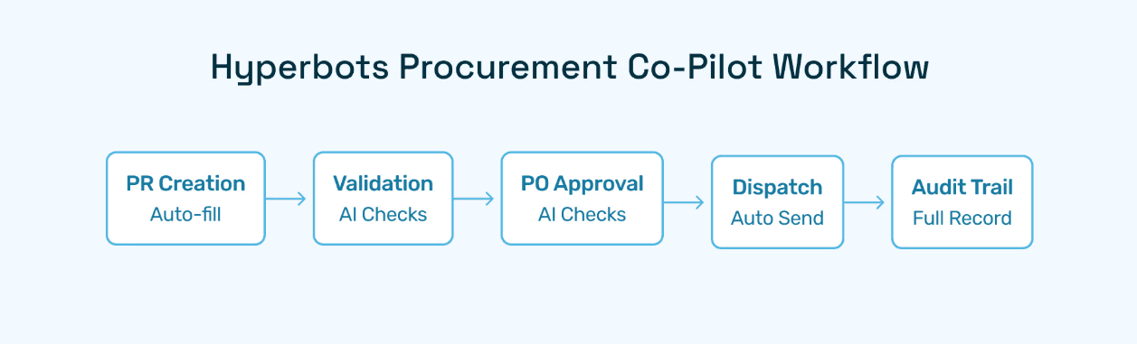 The Procurement Co-Pilot is Hyperbots’ flagship automation tool for purchase order workflows. It covers the entire requisition-to-PO lifecycle, including: