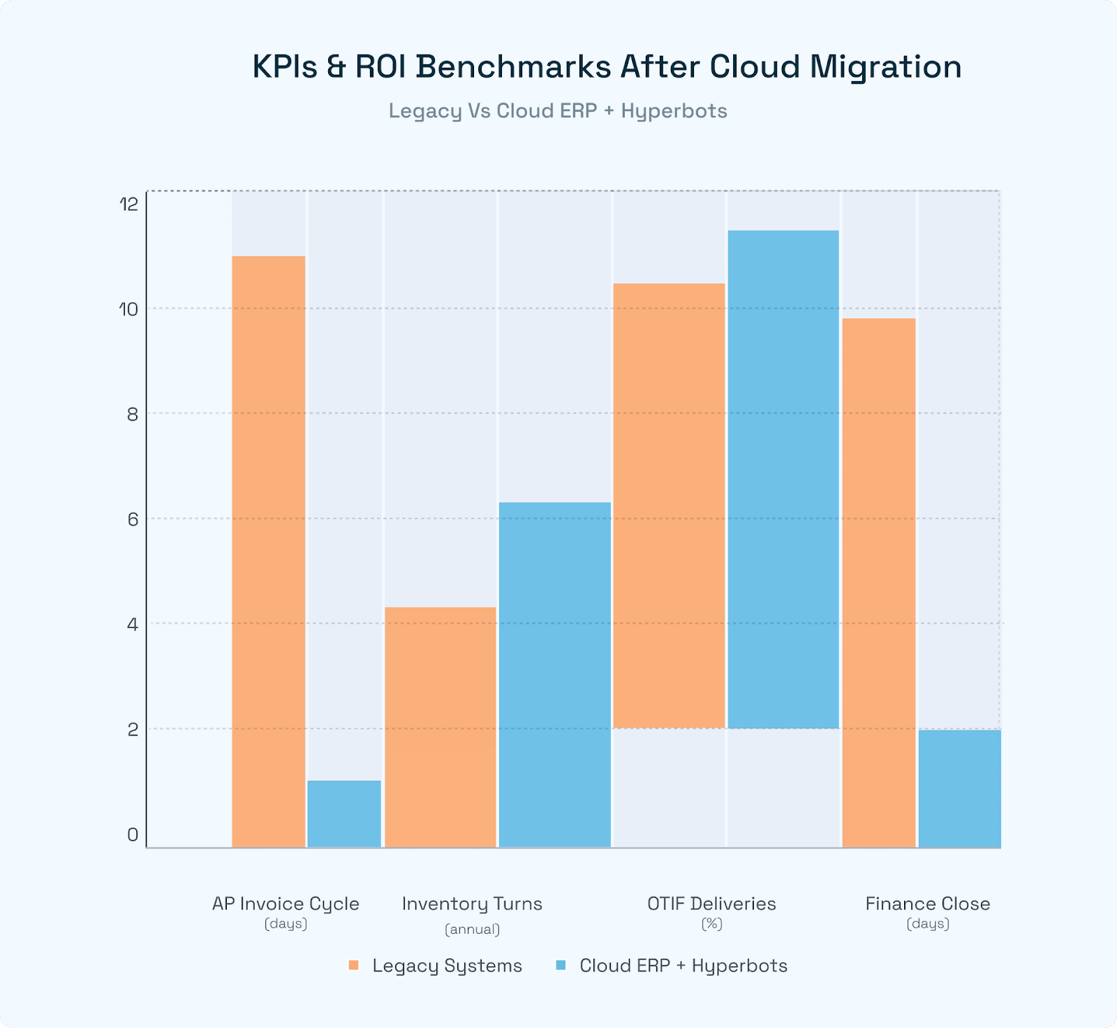 KPI | Legacy | Cloud ERP + Hyperbots | Lift |