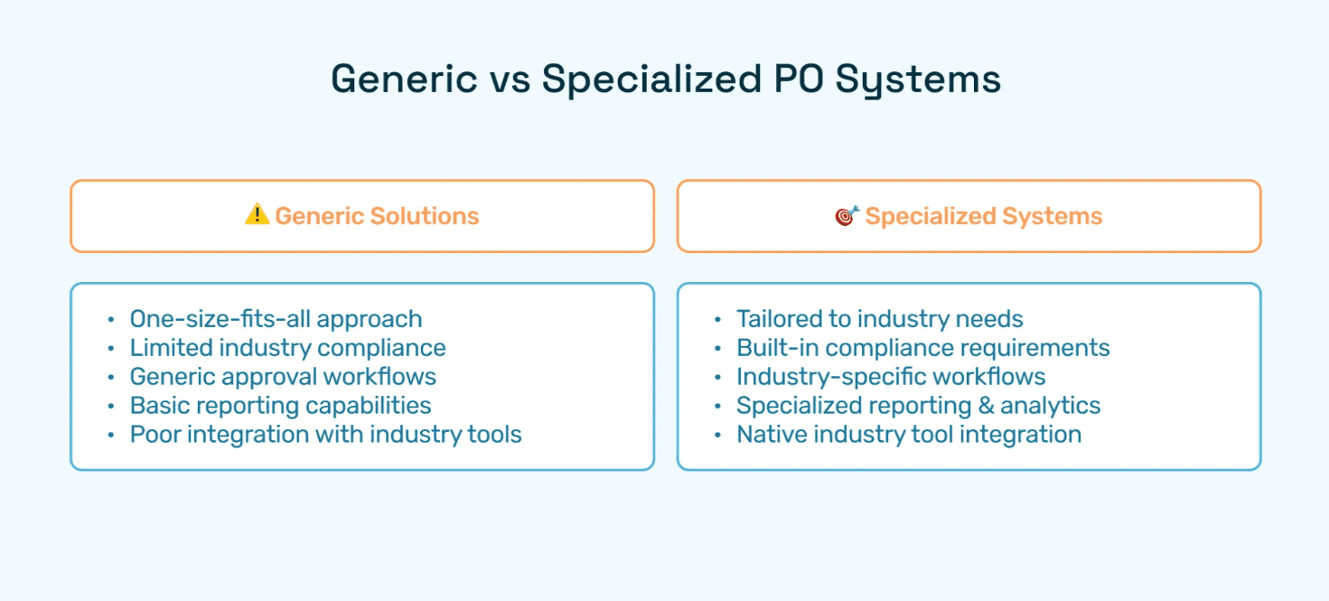 Public Companies (SOX): Enhanced internal controls over purchase authorization, vendor management, and financial reporting accuracy.