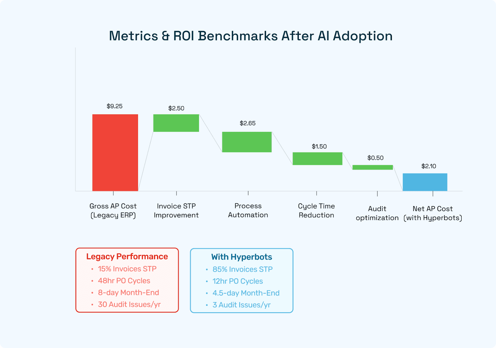 KPI | Legacy ERP Only | ERP + Hyperbots | Typical Gain |