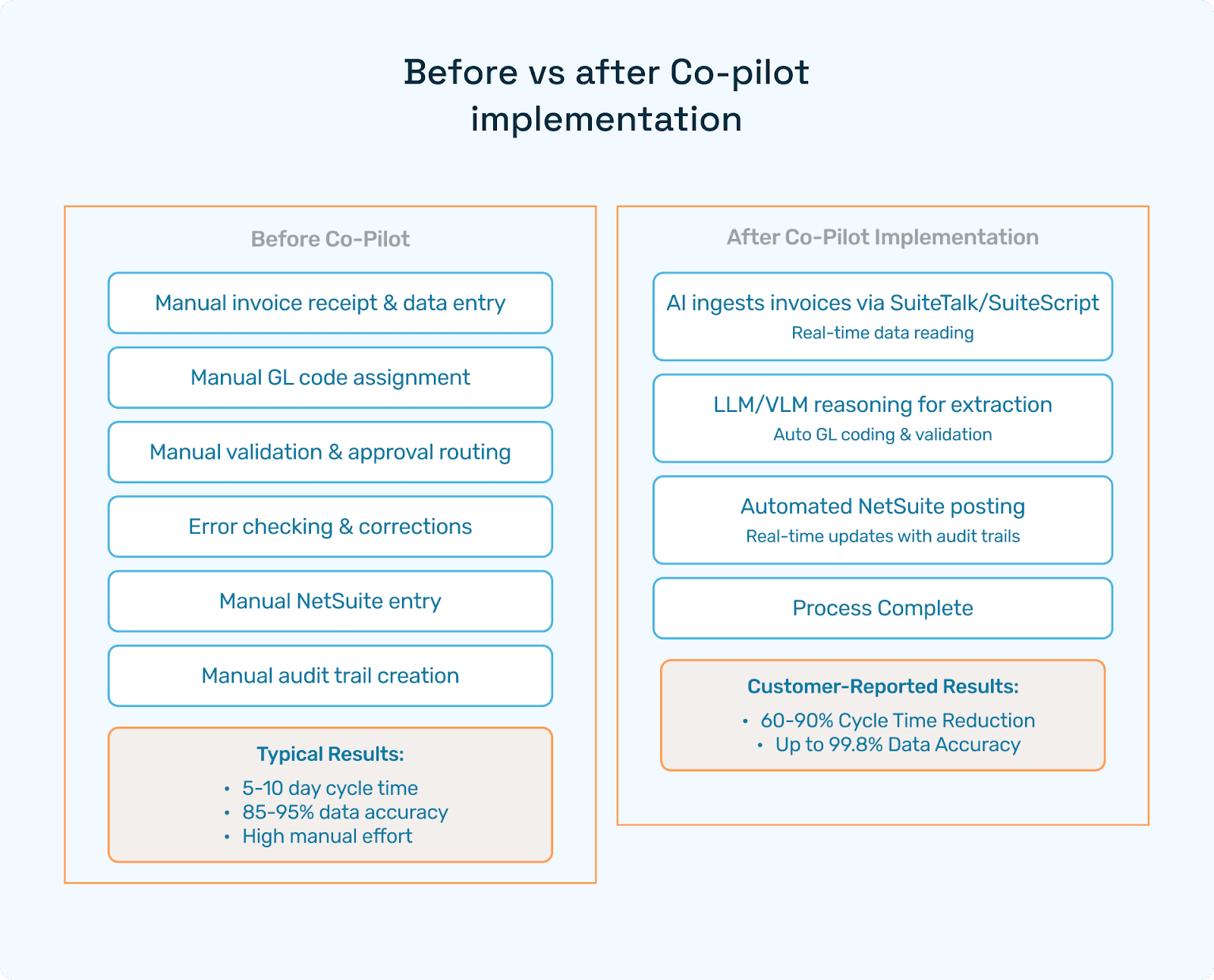 These co-pilots integrate seamlessly into ERP software features and work across levels via APIs, enhancing accuracy, speed, and compliance.