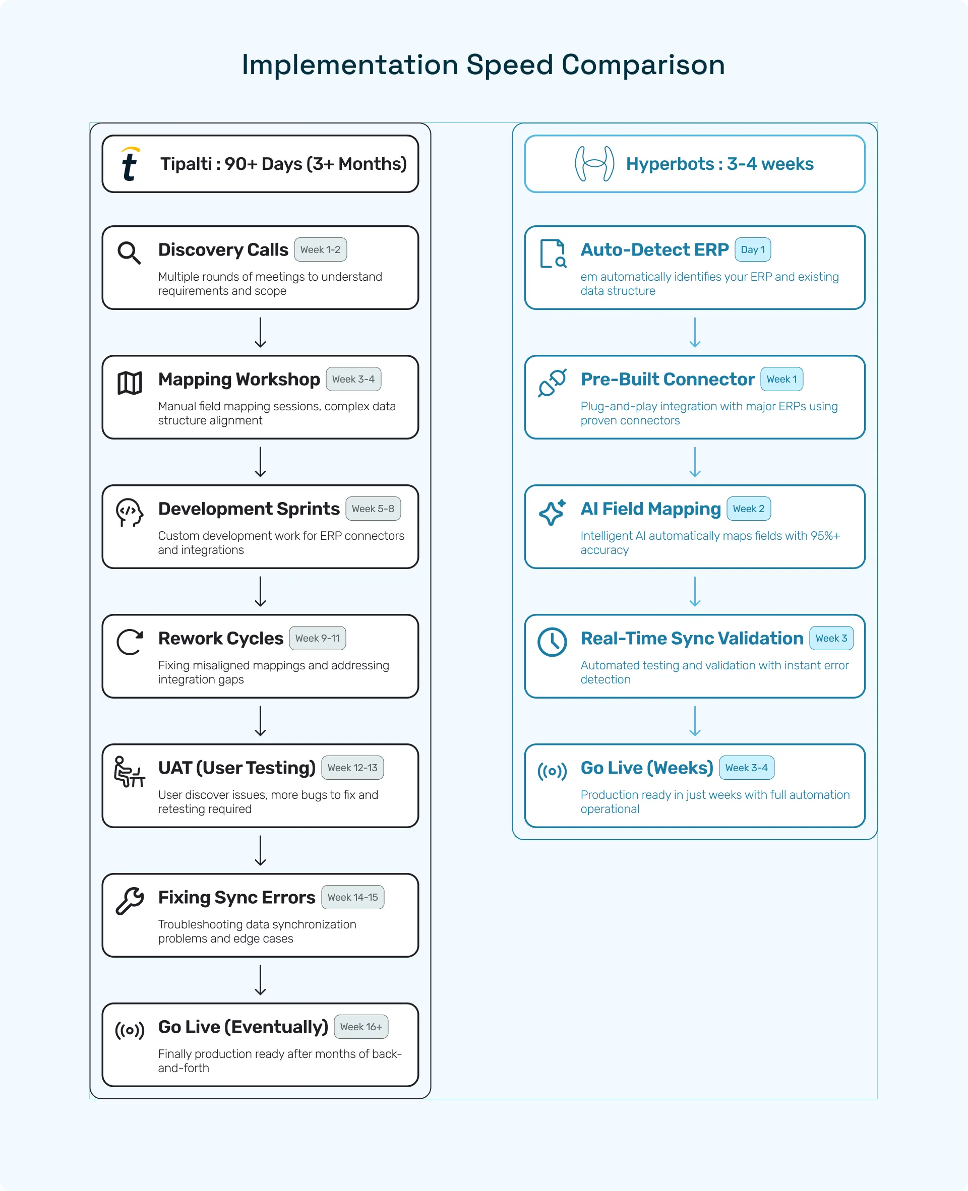 Hyperbots has built integrations to be the exact opposite. Fast, predictable, and refreshingly drama-free.