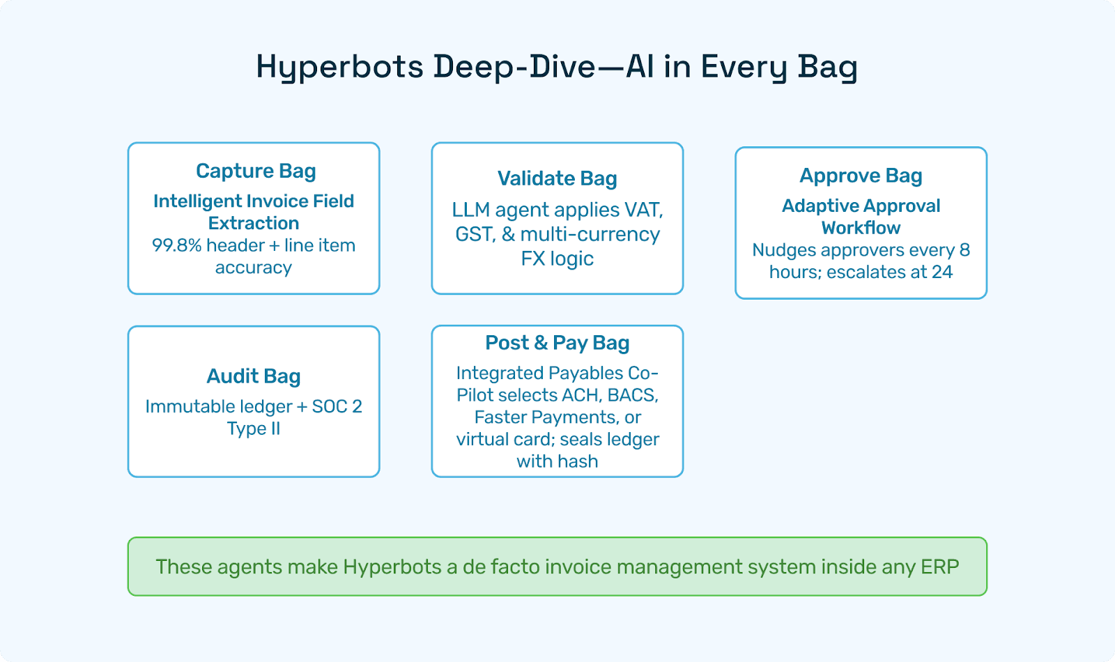 Together, these agents make Hyperbots a de facto invoice management system inside any ERP.