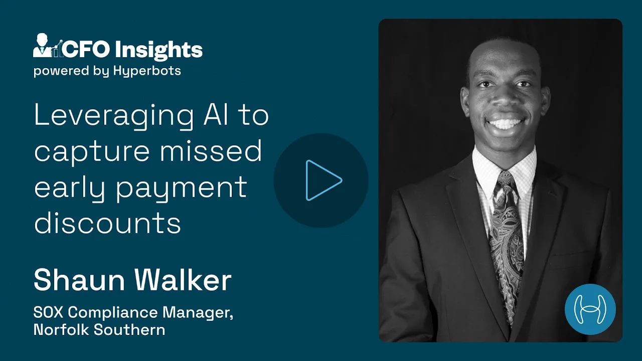 Sherry: Hello, and welcome to all our viewers on CFO Insights. I am Sherry, a financial technology consultant at Hyperbots, and I'm very excited to have Shaun Walker here with me, who is a seasoned internal audit leader with a wealth of experience in driving risk management, compliance, and governance initiatives across diverse industries. Thank you so much for joining us today, Shaun. Today we'll be discussing leveraging AI to capture missed early payment discounts. To get us started, why is it challenging for companies to manually monitor early payment discounts?