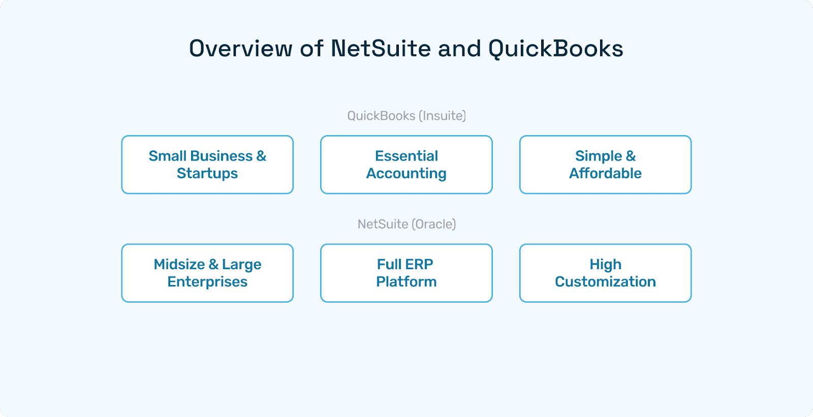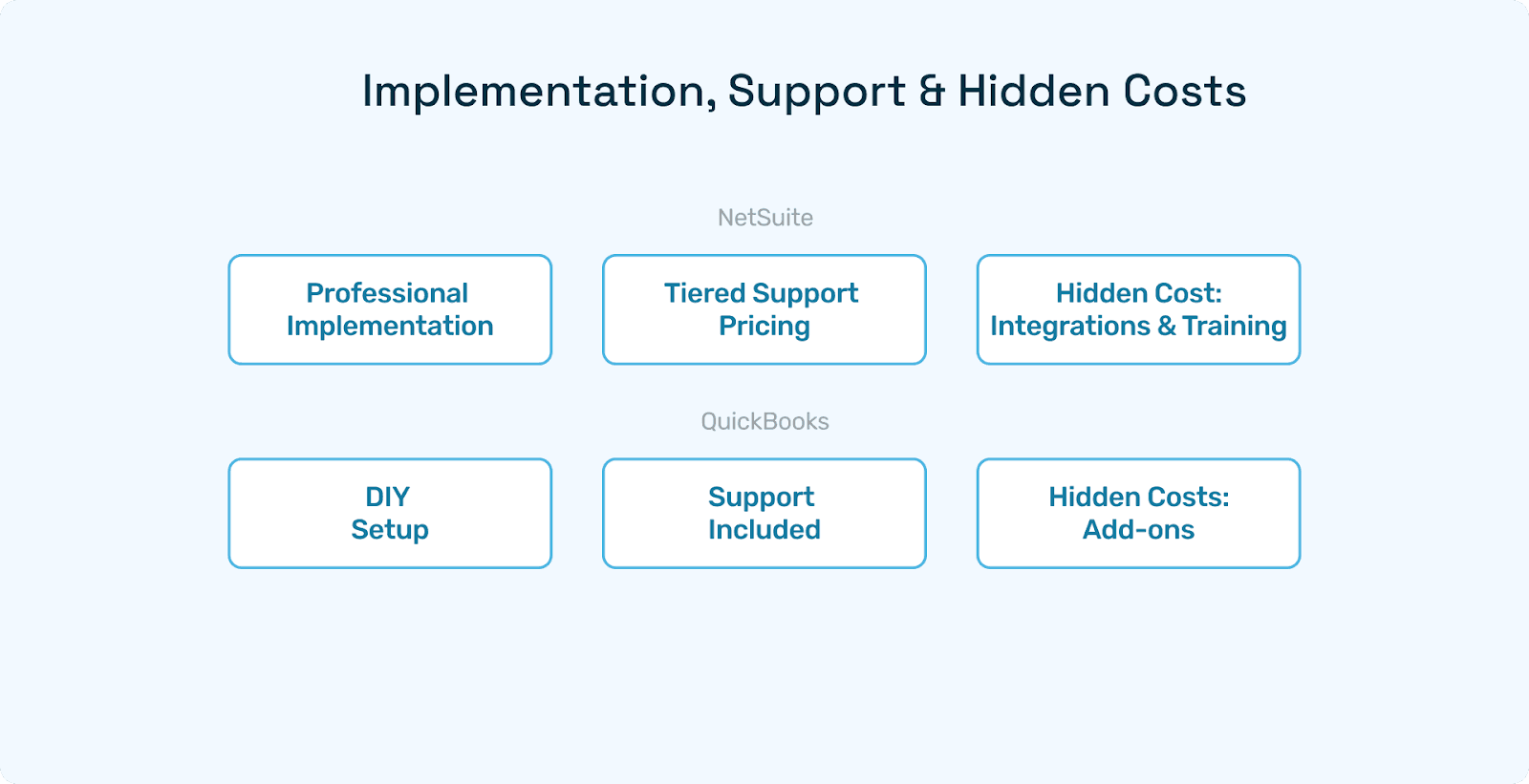Business Type | QuickBooks Cost (Year) | NetSuite Cost (Year) | Recommendation |