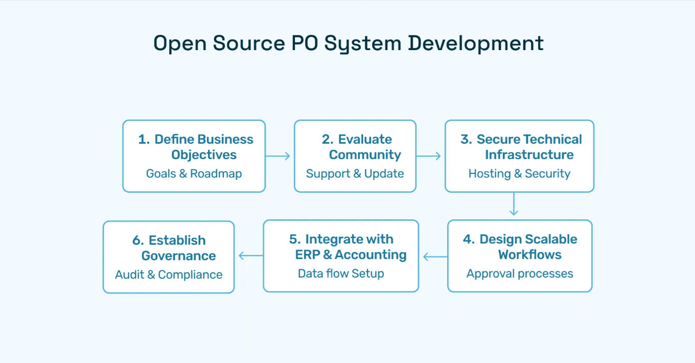 Deploying an open source purchase order system requires thoughtful planning. Unlike proprietary SaaS tools, where the vendor manages hosting, upgrades, and compliance, open source platforms shift much of the responsibility to internal teams.