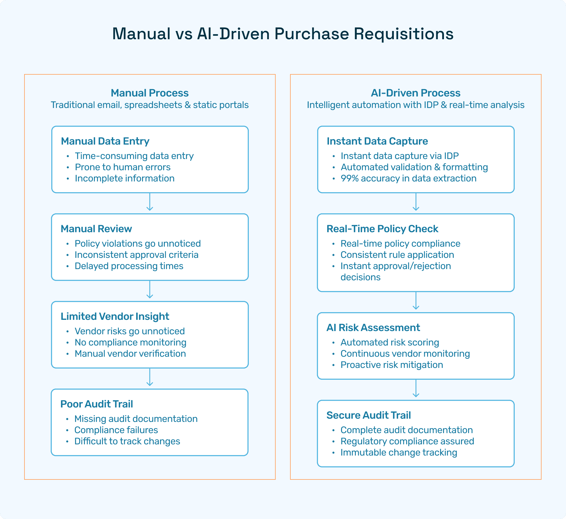 Automated field extraction & PR autofill – Eliminates manual entry errors.