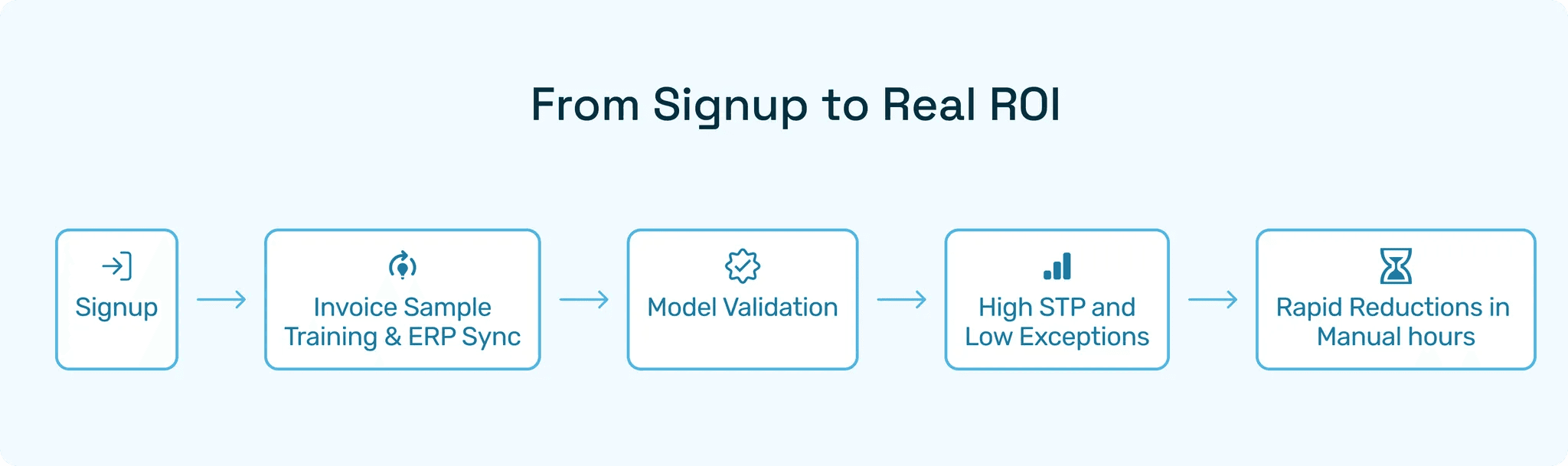 Sustained automation ROI: because extraction is engineered to be highly accurate and matching is context-aware, STP and exception reduction are typically much higher so the ROI becomes visible rapidly and scales with volume.