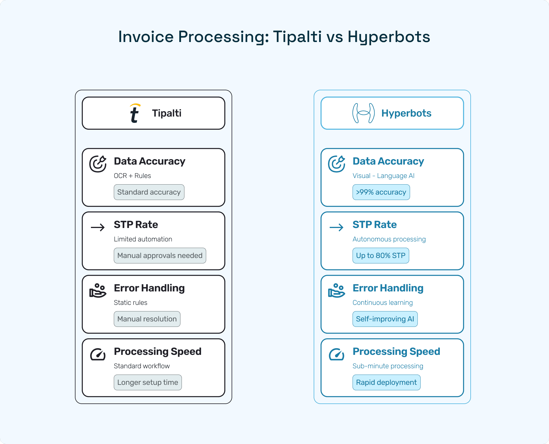 Tipalti Invoice Processing vs Hyperbots - Accuracy, STP & Error Rate Compared