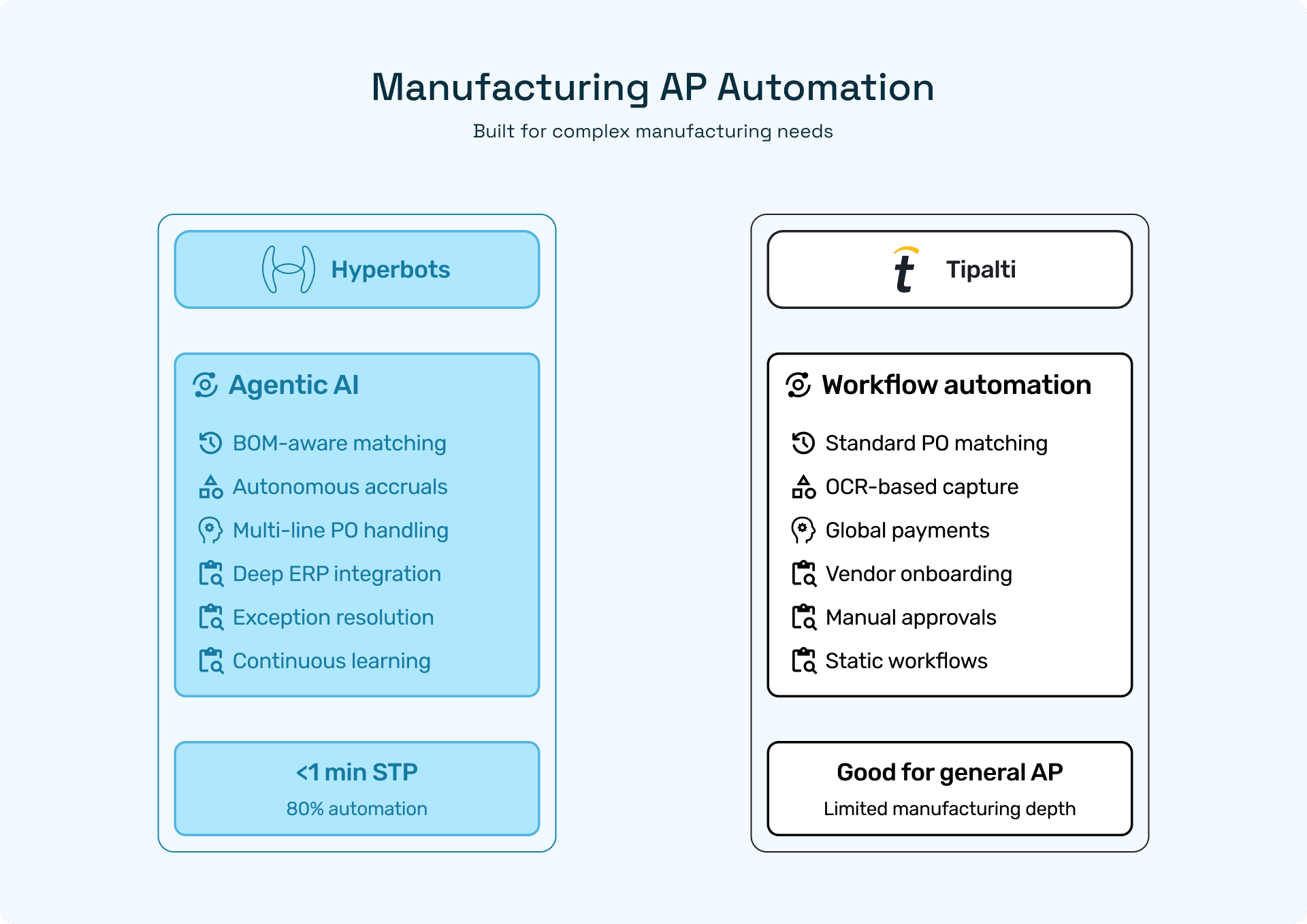 Why Manufacturing Teams Should Choose Hyperbots Over Tipalti for Accounts Payable Automation